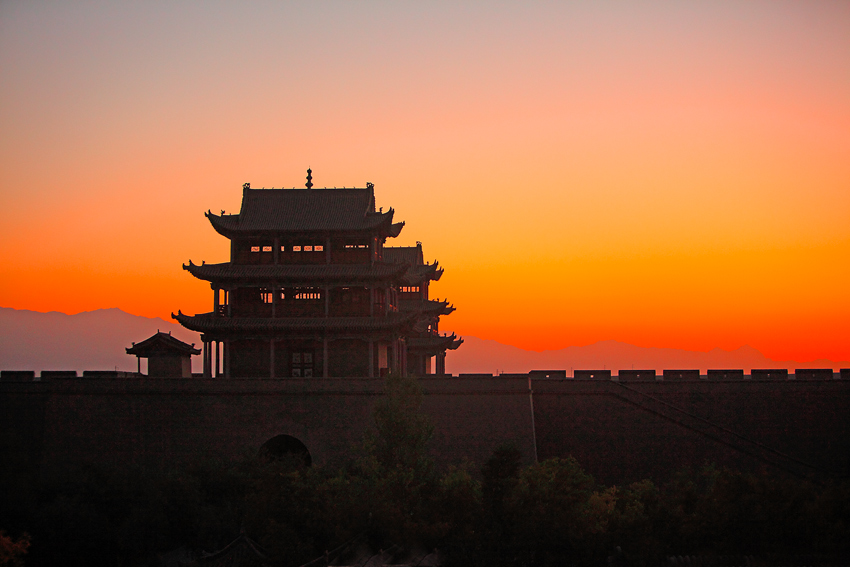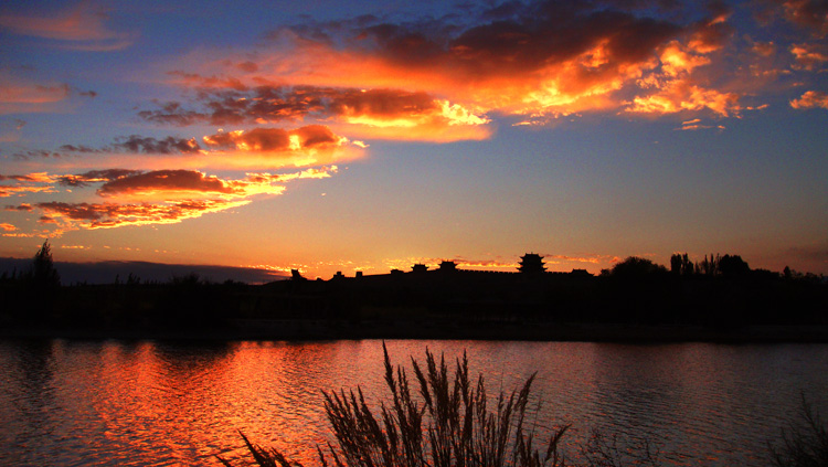 夕阳西下时,嘉峪关关城、南湖、迎宾湖、东湖一道道靓丽风景线。