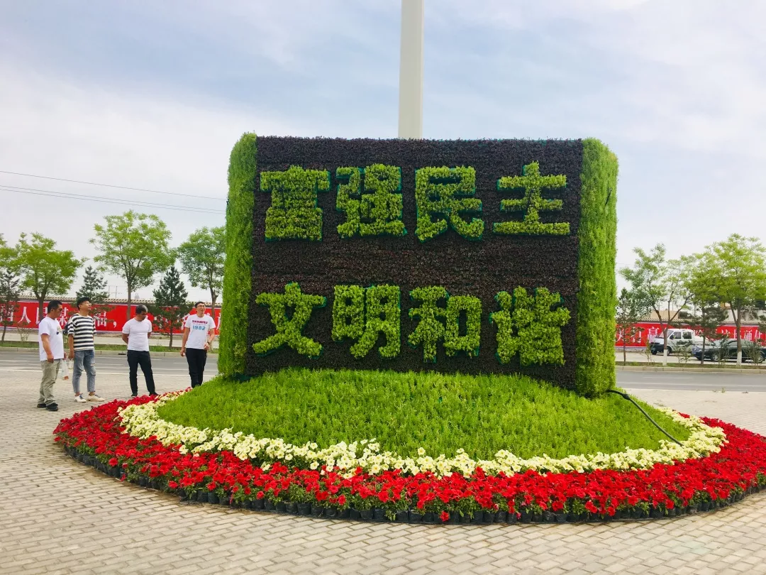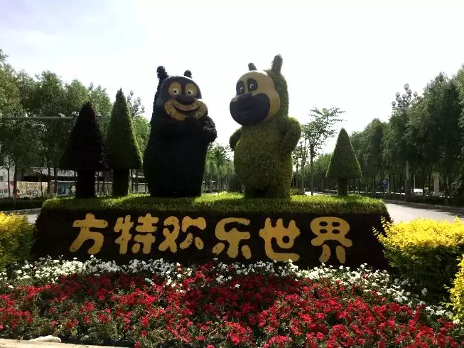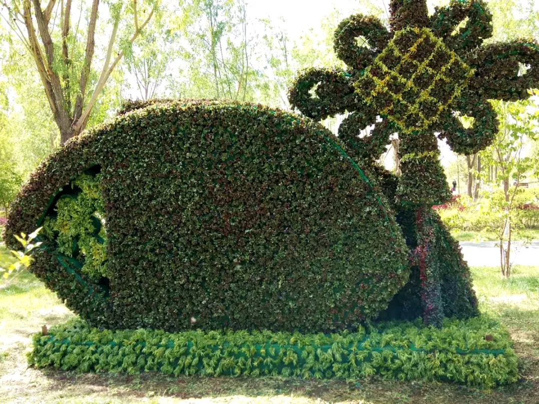 立体植物雕塑共计12处合计面积:1469.42平方米,雕塑外部种植土层上栽种五色草及其他植物,冬季时以塑料仿真米兰草坪修复。