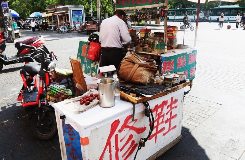 可能会看到摊儿前面挂着的“理发”牌子,也可能是老地方,时间久也没有牌子。