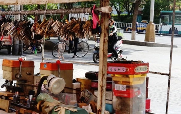 以前在路边,总能在修鞋摊儿旁碰见配钥匙的大叔。现在搬到店里的多了,留在摊位上的少了。