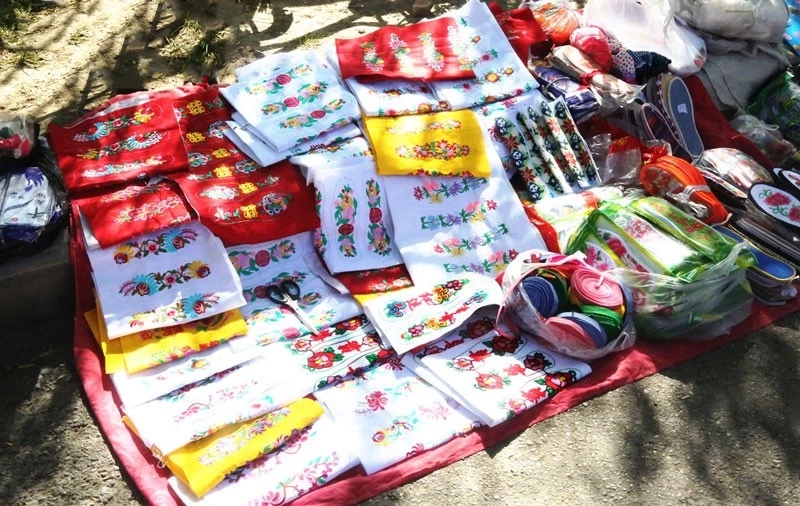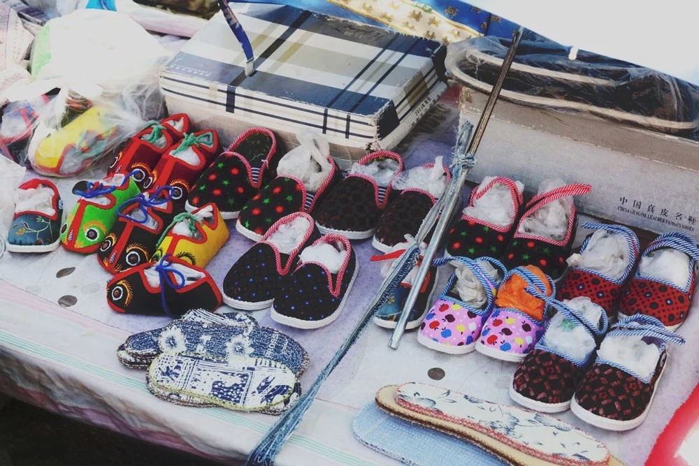 天气暖和时,市场里面会有一些老人把自己缝好的鞋垫摆在小摊儿上卖,尽管样式普通,却都是纯手工制作。