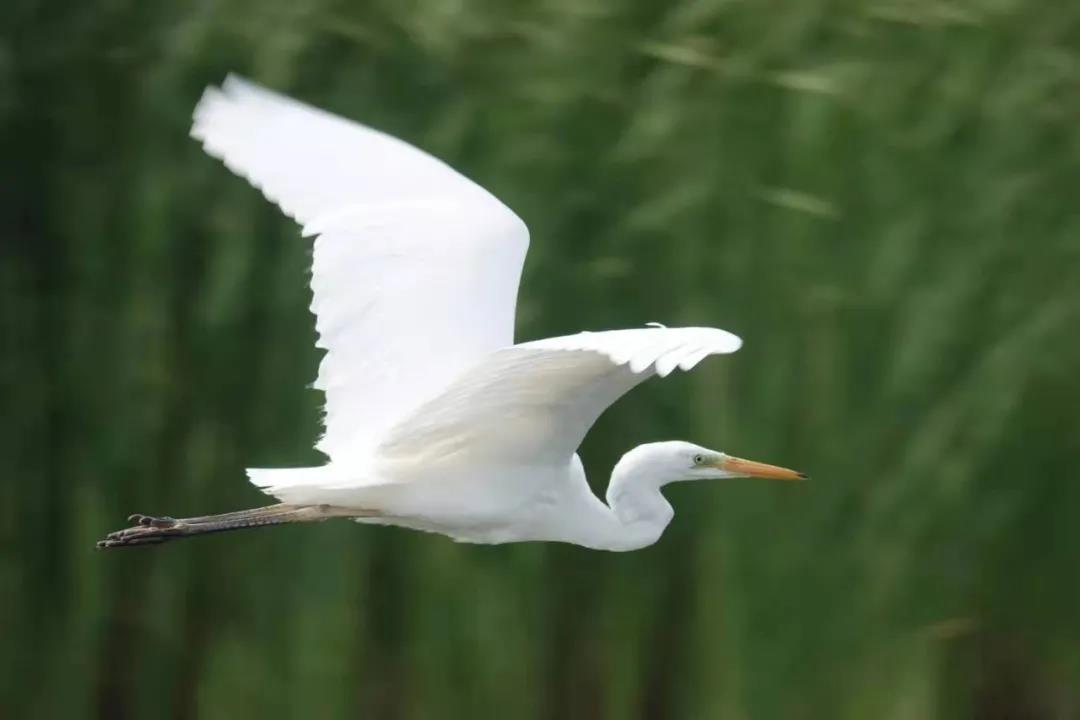 近日,草湖国家湿地公园内飞来了不少正在迁徙中的苍鹭、白鹭、夜鹭、白琶鹭,它们在此停留歇脚,时而独立沙洲,时而傲立水中央,时而又飞入青天,人声鼎沸时总不见踪迹,静谧安宁时却数声相鸣赠予落花。
