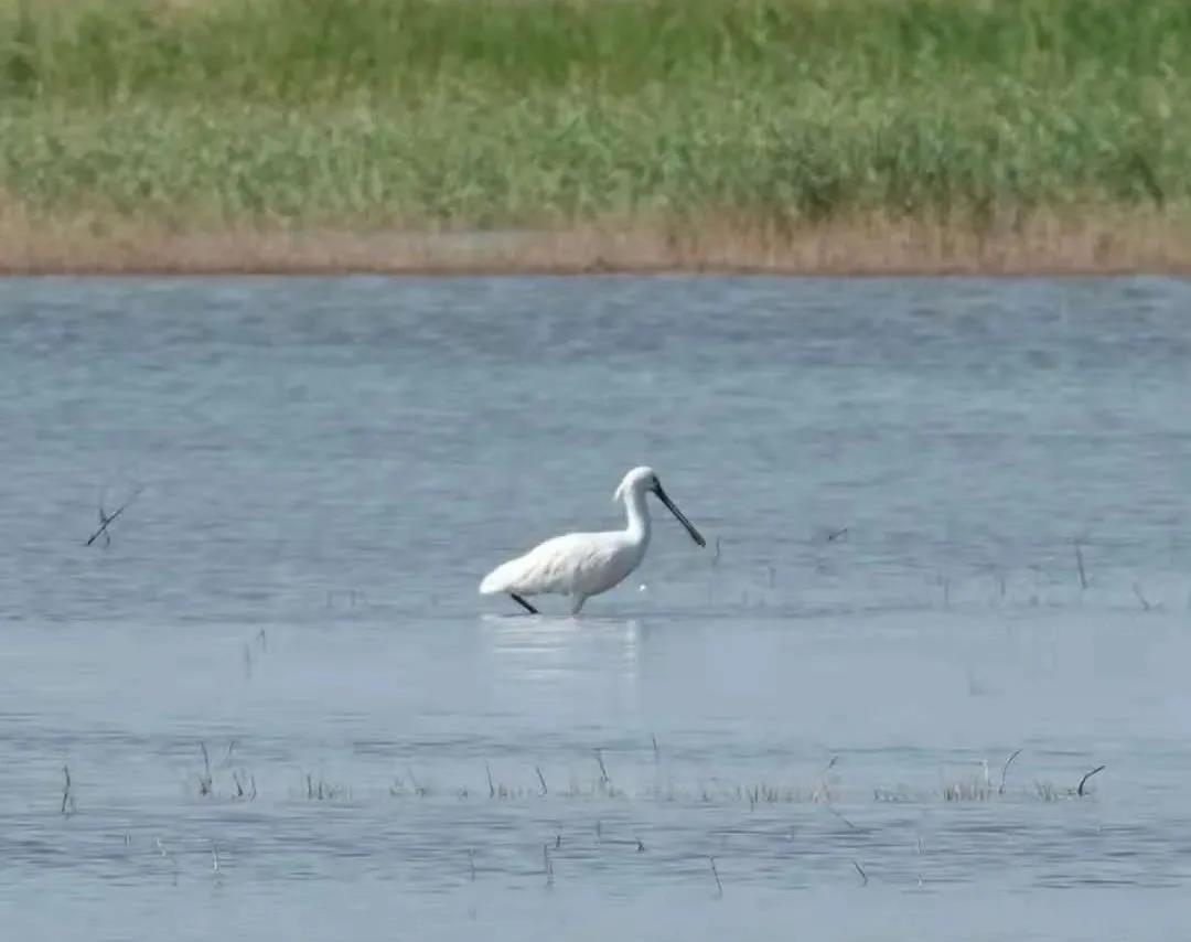 白琶鹭,国家二级重点保护鸟类。属鹮科,是大型涉禽之一。颈、腿均长,全身羽毛呈白色,腿下部裸露成黑色,身长约85厘米,喜涉水啄食虾、蟹、水生昆虫、蠕虫、甲壳类、软体动物、蛙、蝌蚪、蜥蜴、小鱼等小型动物,偶尔也食用水生植物。栖息于开阔平原和山地丘陵地区的河流、湖泊、水库岸边及浅水处,也见于水淹平原、芦苇沼泽湿地、沿海沼泽、海岸、河谷冲积地和河口三角洲等各类生境,很少出现在河底多石头的水域或植物茂密的湿地。