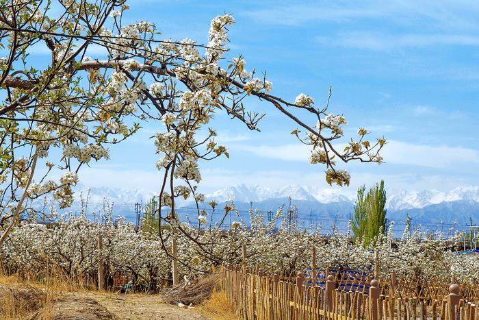 四月,我市各村镇更是条块分明、绿黄成片。文殊镇万亩梨花格外显眼,隔着树、隔着山,与祁连白雪遥遥相望,美景吸引着众多游客前来游玩。