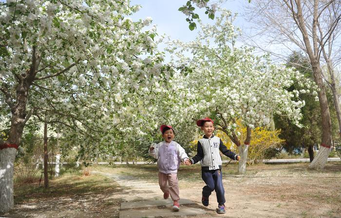 南湖文化生态公园杏花、梨花竞相绽放