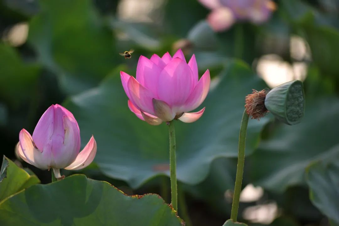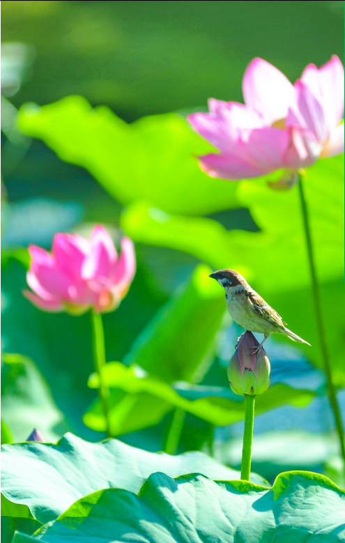 盛夏时节,我市雄关公园、迎宾湖旅游园区的荷花次第盛开,一朵朵或粉或白的荷花亭立于湖水之上,碧绿圆叶高低错落,美不胜收,吸引不少市民前来赏花打卡,也吸引鸟雀在花间嬉戏觅食,呈现出一幅美丽的生态画卷,为夏日的嘉峪关增色不少……