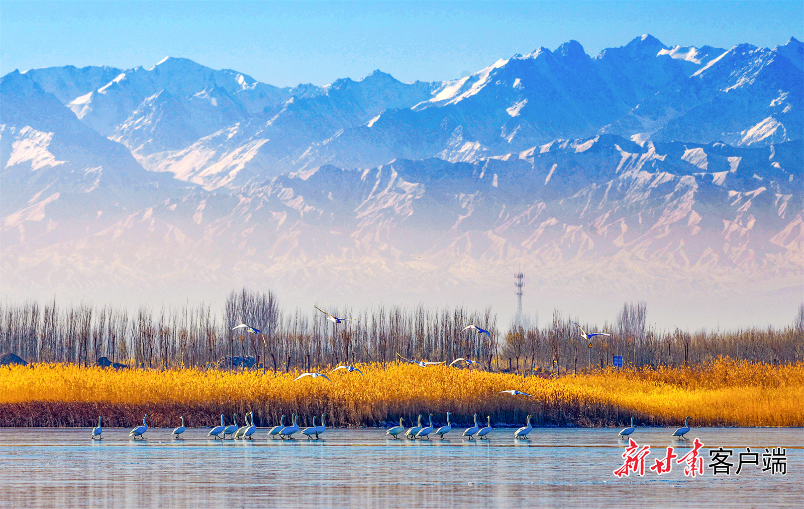 栖居在嘉峪关市草湖国家湿地公园越冬的天鹅。