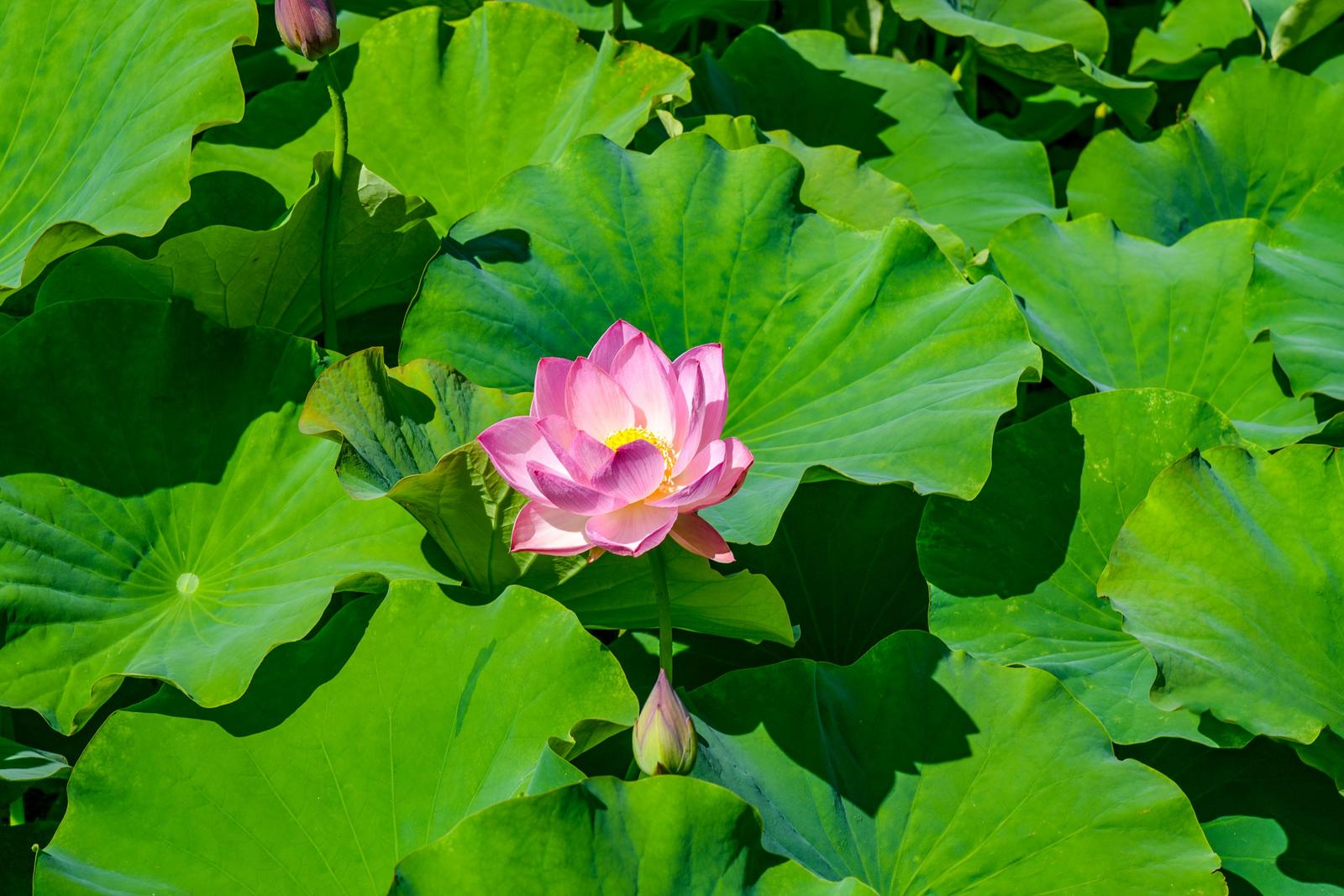 盛夏时节,嘉峪关市迎宾湖旅游园区的荷花开始悄然绽放,连片的荷叶间,点缀着点点粉色、红色、白色的花朵,放眼望去,一派荷红柳绿。微风拂过,清雅秀丽的荷花展露出动人的风韵,在蓝天的映衬下相映成趣,美不胜收,吸引众多市民和游客前来游玩赏花、拍照打卡。