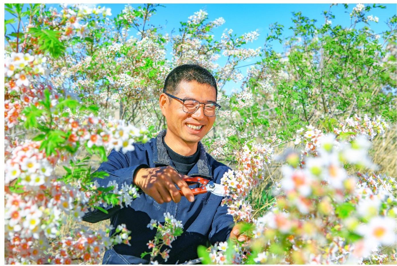 5月8日,位于祁连山下甘肃星霖文冠果生态农业有限公司的1300余亩文冠果树迎来盛花期,果农抢抓农时疏花剪枝,确保挂果质量。