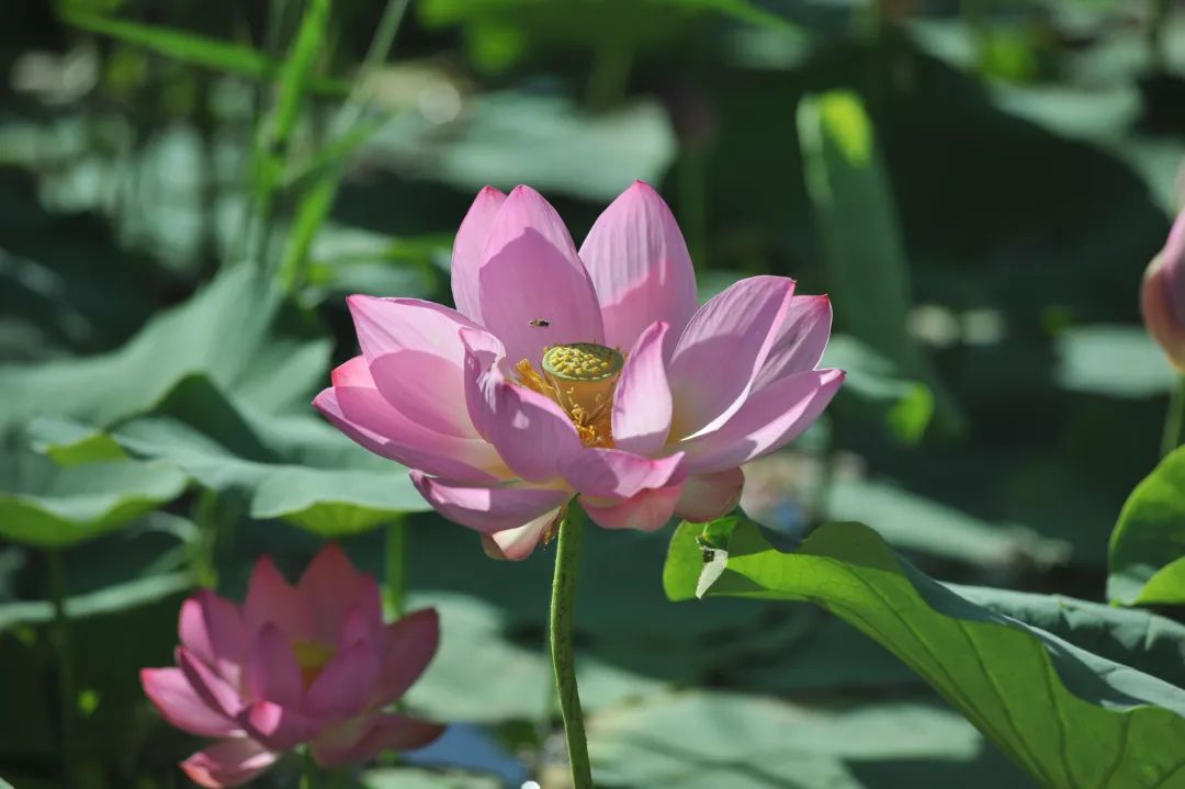 “接天莲叶无穷碧,映日荷花别样红”,盛夏之时,雄关公园、迎宾湖公园、酒钢公园的荷塘,荷花美景尽收眼底,站在岸边放眼望去,片片荷叶高低错落、层层叠叠,荷浪翻涌间,一个个浅粉色、红粉色、白色的花骨朵正含苞待放。清风拂过,阵阵清幽荷香扑面而来,让人顿感神清气爽。