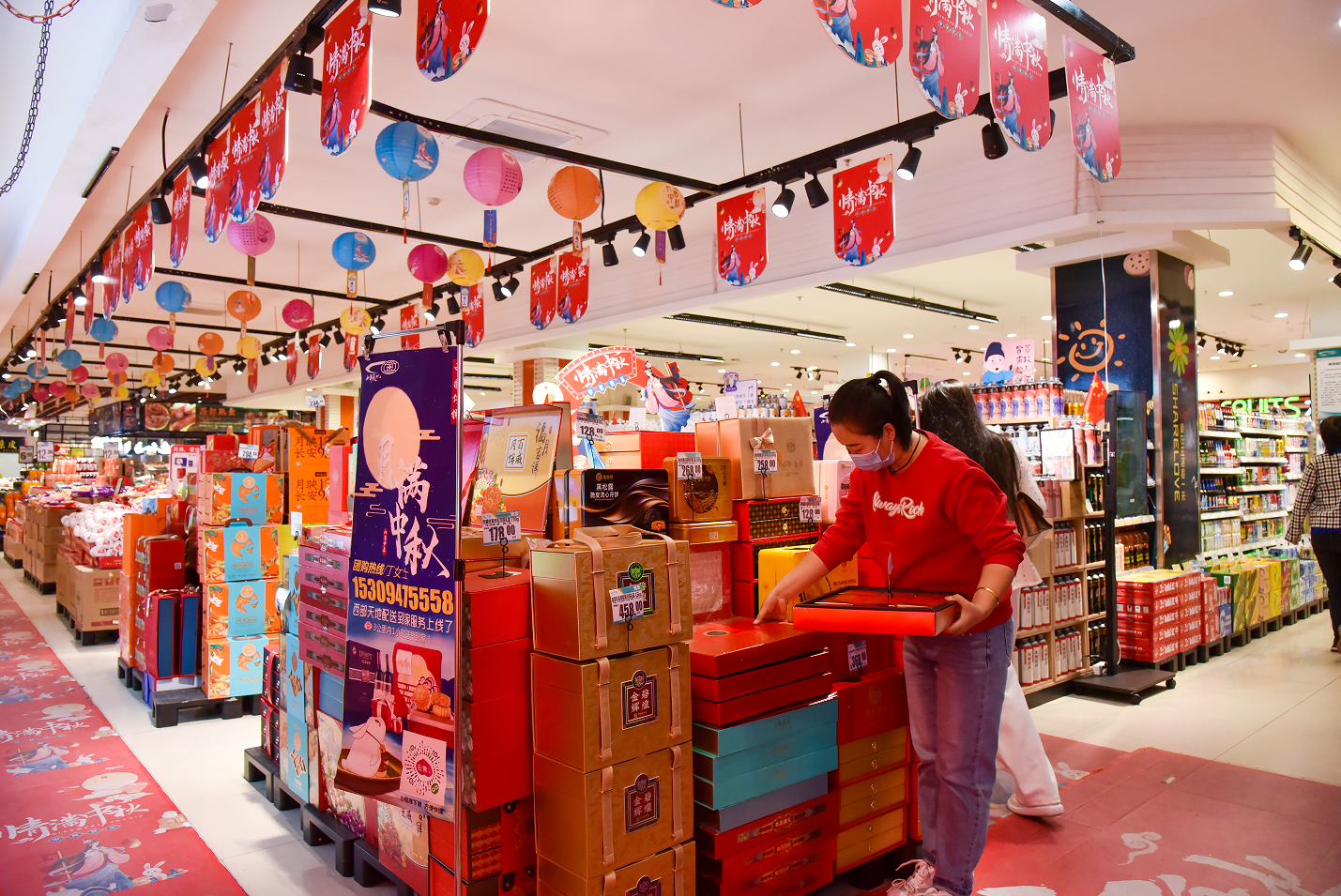 图③:中秋节临近,月饼市场升温,市民采购忙。