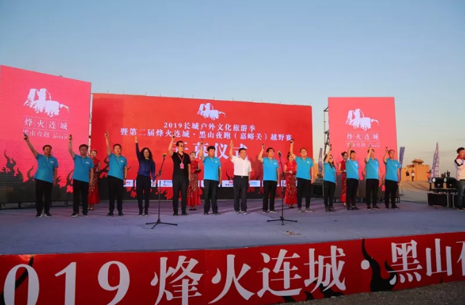 8月24日晚,2019长城户外文化旅游季暨第二届烽火连城·黑山夜跑(嘉峪关)越野赛开幕式隆重举行。市委书记李忠科宣布比赛开幕并与到场嘉宾一同为运动员发令鸣枪;市政协主席燕胜三出席开幕式;市委副书记、统战部部长张静昌出席并致辞;行知探索文化发展集团创始人、董事长曲向东,市人大常委会副主任王真智出席开幕式。副市长义战鹰主持开幕式。市文化和旅游局、体育局、卫生健康委员会、嘉恒产业发展有限公司等有关部门负责人及广大户外运动爱好者、志愿者近千人参加了开幕式。