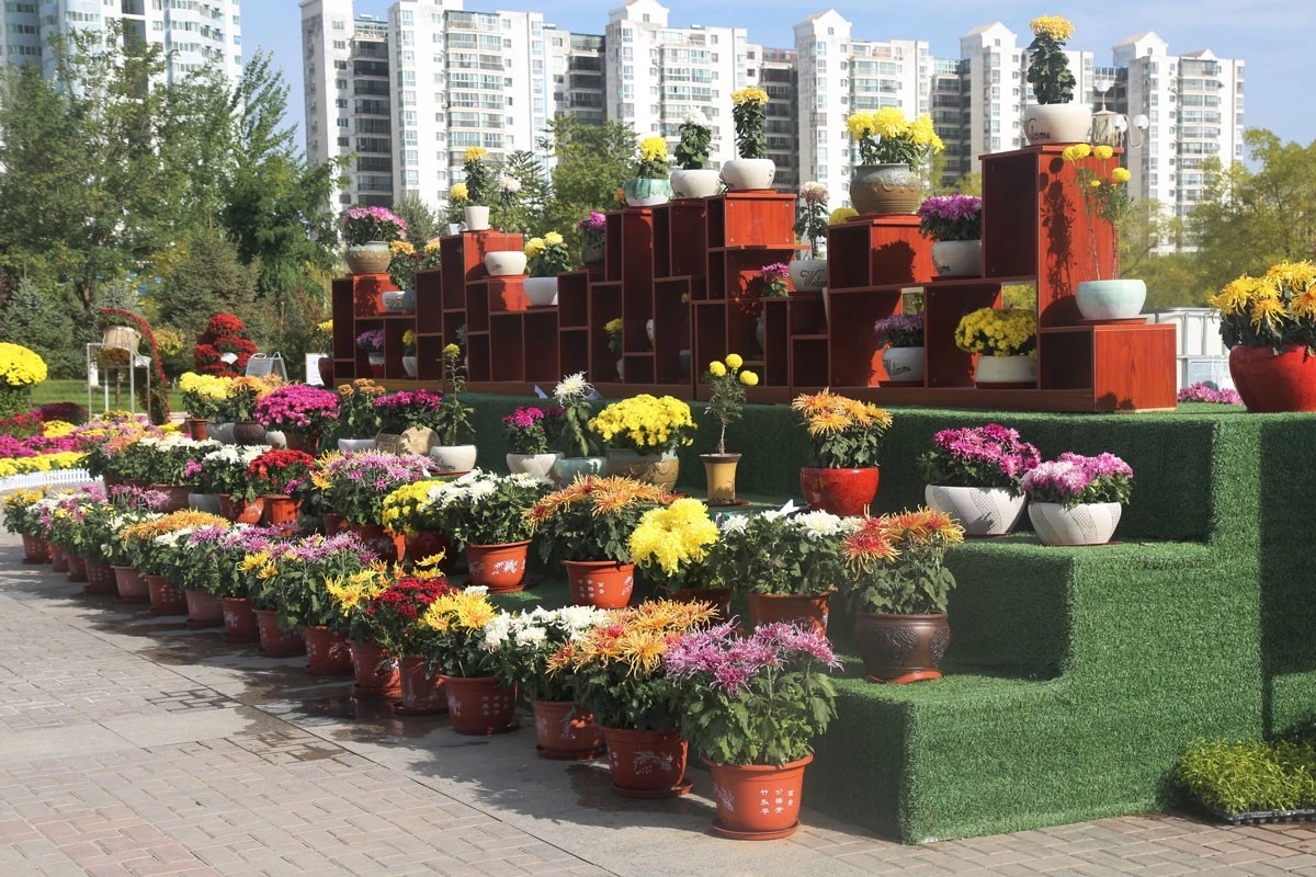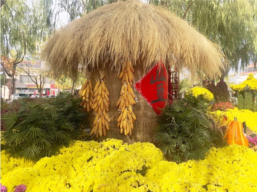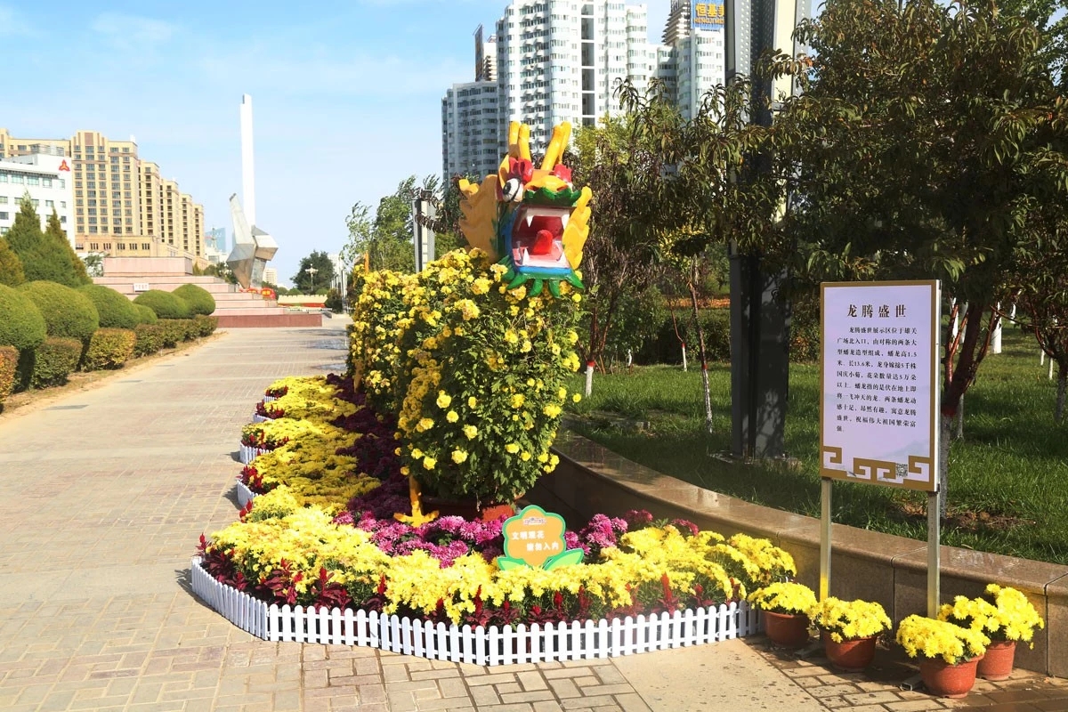 文化节展示区由菊花文化节主题展示区、城市主题菊花互动区、艺术菊花展示区、精品菊花展示区、龙腾盛世菊花展示区等组成,通过大型立体花坛、花架、小品和造型景观的方式,结合园林手法搭建主题园圃,将雄关广场装扮成花的海洋。