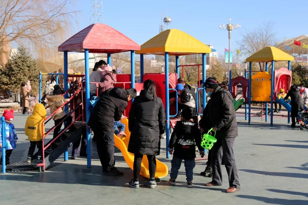 在雄关广场记者看见,不少市民都带着小朋友出来散散步,玩下健身器材,而最受小朋友欢迎的滑滑梯更是围满了人。