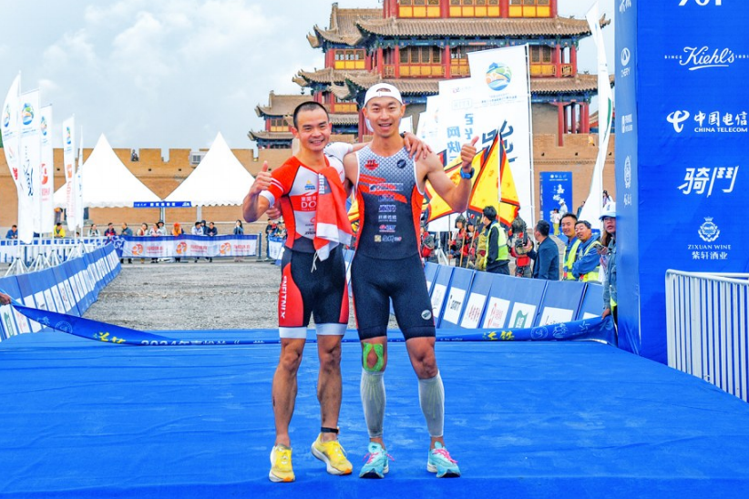 激情铁三 魅力雄关 运动员合影留念