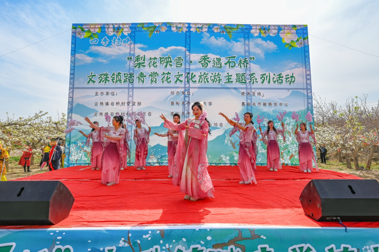 4月26日,文殊镇踏青赏花文化旅游主题系列活动在石桥村开幕,争相盛开的千亩梨花、精彩纷呈的文艺演出、创意有趣的互动节目,吸引了许多市民游客赏花游玩、打卡拍照。