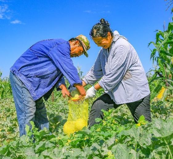 7月31日,新城镇横沟村精心选育的20多个新品种蜜瓜成功上市,种植户采摘蜜瓜供应市场。