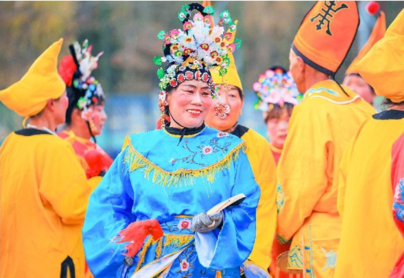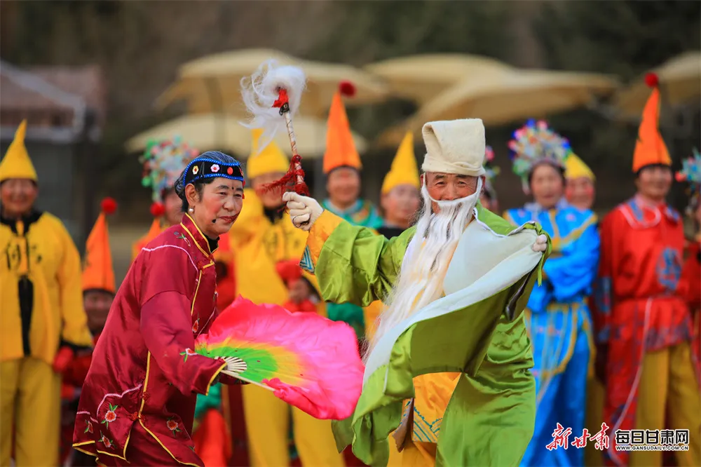 近日,嘉峪关市文化馆组织当地非遗地蹦子表演者排练,为2025年春节社火展演作准备。