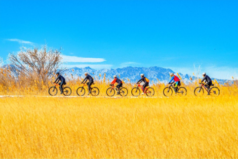 嘉峪关草湖国家湿地公园观光设施升级改造投入使用后,吸引众多骑行爱好者骑行游玩,欣赏冬日美景,享受运动快乐。这是近日骑行爱好者在公园享受骑行快乐。