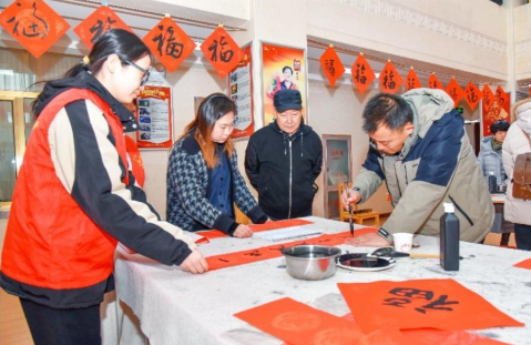1月13日,市文化馆开展“千福千联送基层”文化惠民活动。这是书法爱好者为市民书写春联。
