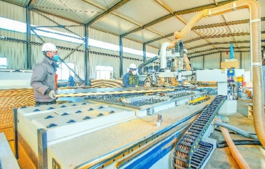 近日,在位于我市嘉东工业园区中小产业园的蓝科汇鑫板式家具及校用桌椅加工生产项目生产车间内,工人抢抓时间,全力赶制订单家具,冲刺年度生产目标。 这是工人正在加工订单产品。