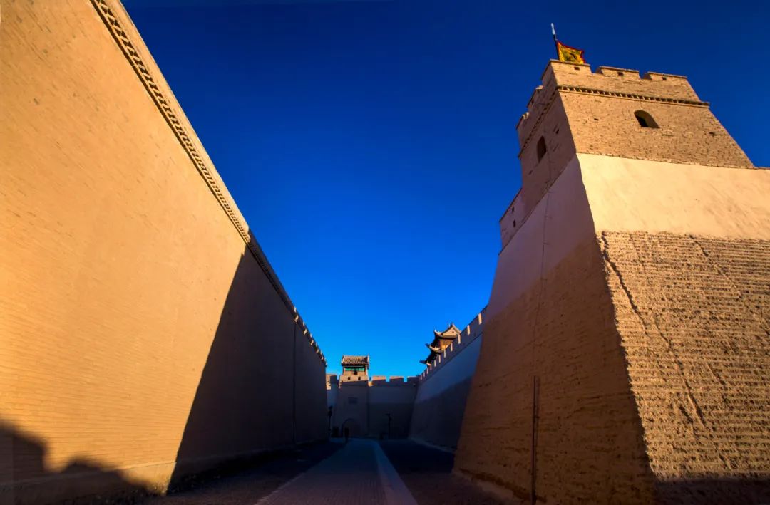 "Jiayuguan Pass" means a "Beautiful Valley" as it adjoins Qilian Mountain in the south, Mazong Mountain in the north, Jiuquan Basin in the east and flat Gobi in the west. It is just situated in the narrowest place of the western corridor in a reasonable layout. With both eastern and western gates within the Pass City, there are cities for gates protection covering an area of more than 500 square meters respectively. Both the city gates are open to the south, while in the west of the western enclosure, there built an outer city, and in the middle of the wall of the outer city, a pass gate is set in the west. On the lintel, three Chinese words of Jiayuguan are inscribed. Within the Pass City, the existing buildings mainly include Guerrilla General Office, Official Well, Guanyu Temple, Stage and Wenchang Pavilion.