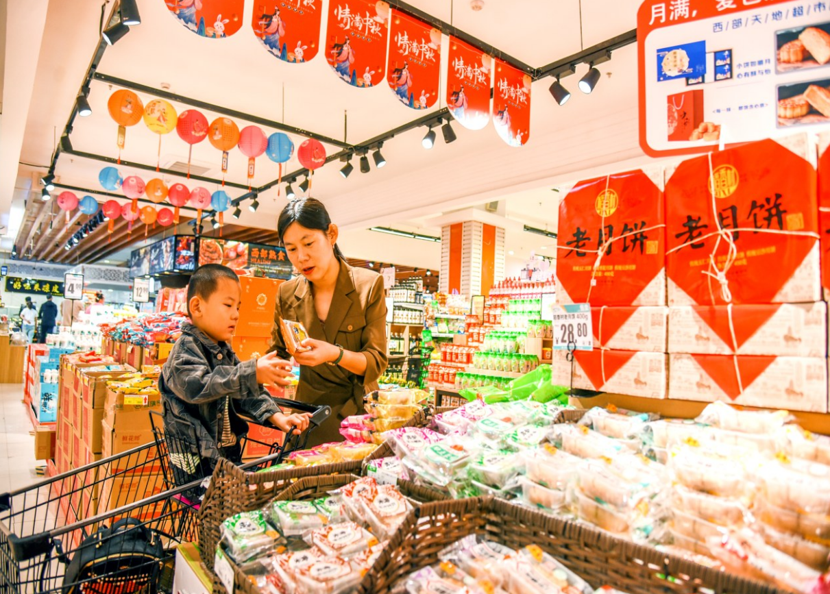 With the Mid-Autumn Festival around the corner, Jiayuguan's mooncake market is bustling with activity. Supermarkets across the city have set up dedicated mooncake sections featuring diverse flavors, styles and price points to cater to different consumer groups.