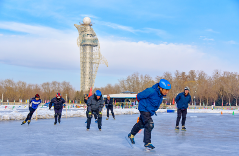 With the temperature dropping, ice-related sports have started in our city. Ice rinks in various parks are ready to welcome visitors, and more and more are coming here to experience the joy of winter sports. This is on January 6th, speed skating enthusiasts are enjoying themselves on the ice surface of Donghu Ecological Scenic Area.