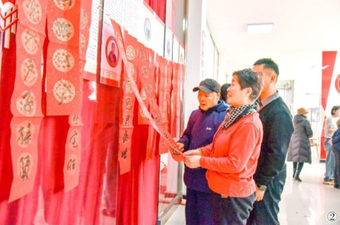 The community held a New Year's couplets distribution event for th...
