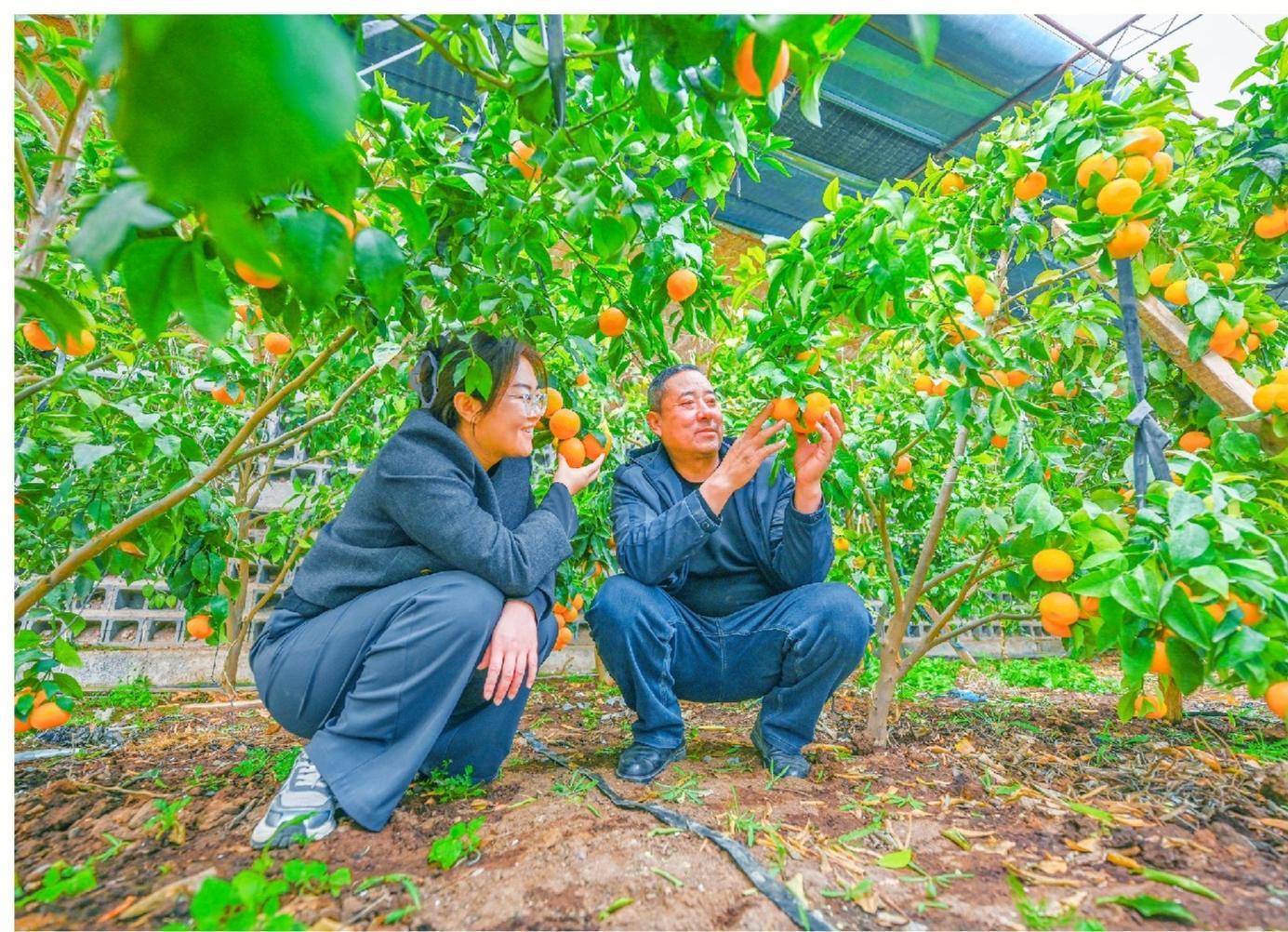 Recently, the honey orange greenhouses in Yemawan Village, Xincheng Town have been filled with an intoxicating sweetness. Golden-yellow oranges glow vibrantly among lush green leaves, creating a lively scene of thriving abundance.