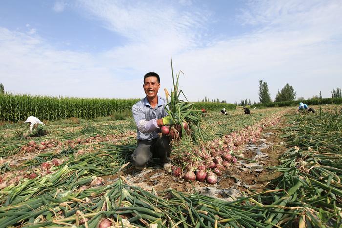 When the "hongyunlai" onion, the national geographical indication of agricultural products in guanpu village, Xincheng Town, was ripe and listed, there was a busy harvest scene everywhere in the field, and onion growers scrambled to gather in groups during the farming season. Over the years, guanpu village, a new town, has made full use of the ge...