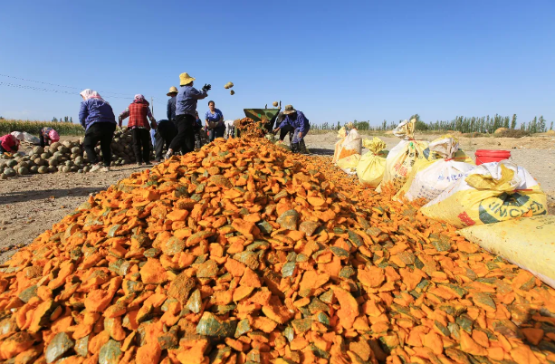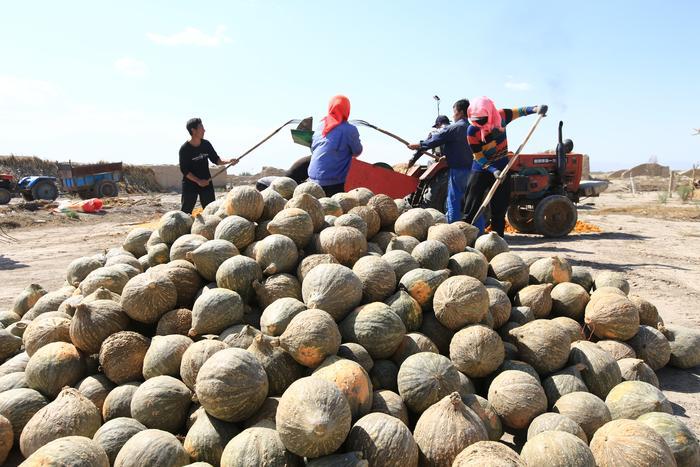 On September 19, more than 2100 mu of seed pumpkin in Xincheng town had a bumper harvest. Seed farmers scrambled to pick, remove seeds, wash and air dry during the farming season. There was a busy autumn harvest in the fields and sun drying farms. In recent years, the new towns have made great efforts to develop the seed production agricultural industry ac...
