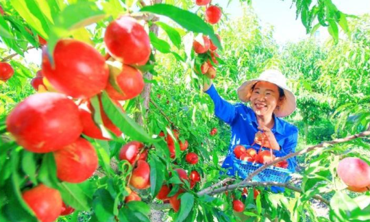 The off-season nectarines and honey peaches in the greenhouse of fengjiagou village, Wenshu town have been mature and listed one after another. Photographed by Ma yufu