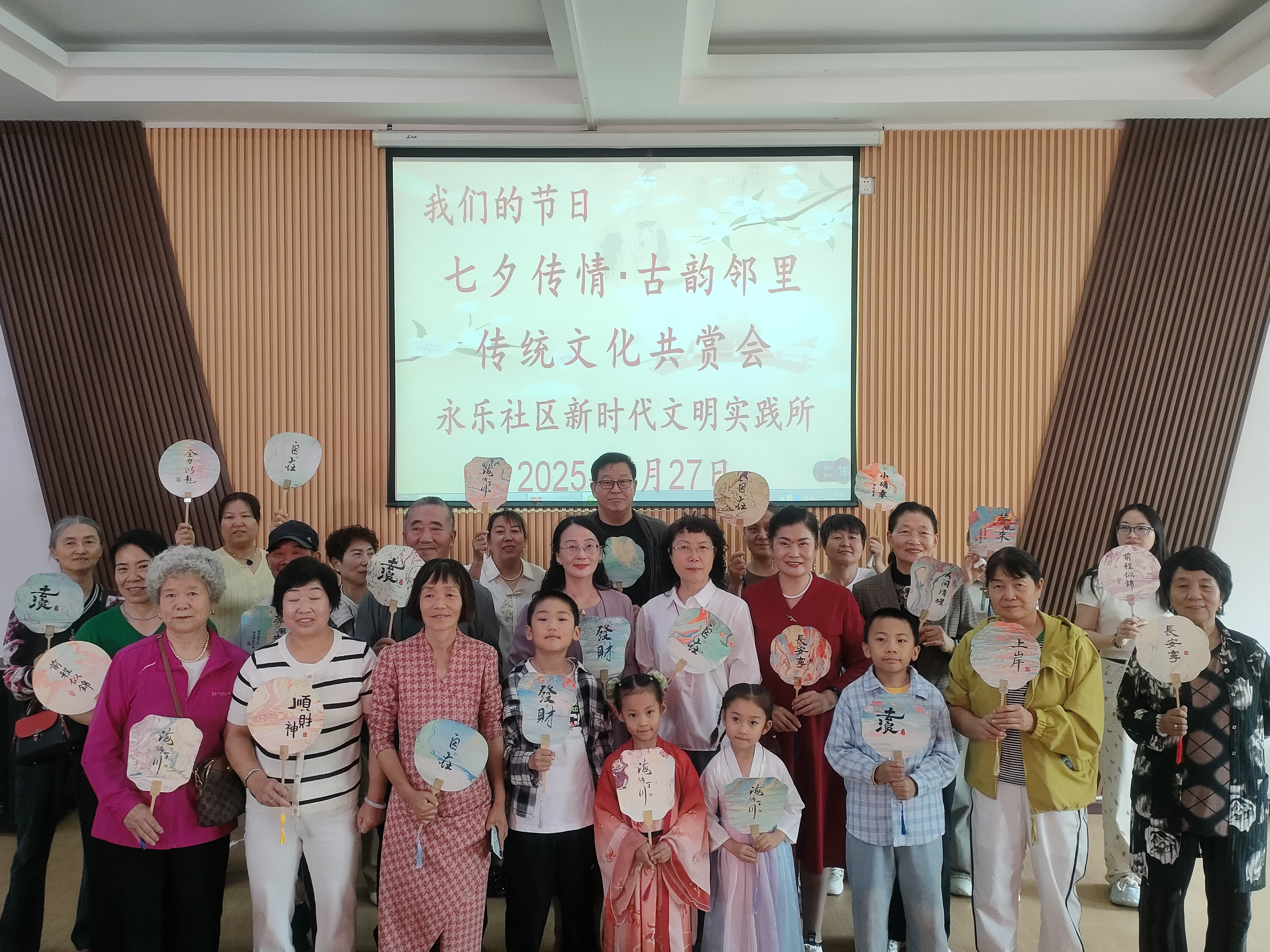 In order to carry forward the excellent traditional Chinese culture and enhance the friendship of the neighborhood, on August 27th, Yongle Community held a culture appreciation event of "Qixi Festival Love·Ancient Rhyme Neighbor". Many residents gathered together to wear Hanfu, make lacquer fans, listen to the of Niulang and Zhinu, and spend a wonderful time together with laughter and joy, immersing themselves in the unique charm of traditional festivals.