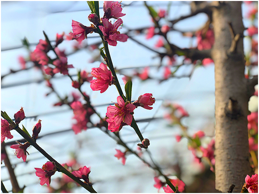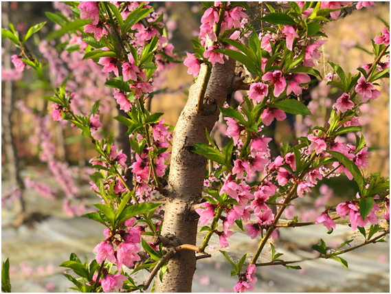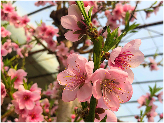 Wenshu town has been planting peach trees for many years. Through constant trial and error and learning, it has formed a basic planting mode. There are corresponding standards for each link. The farmers have a fixed number of flowers and fruits in a peach tree. Now there are five kinds of peach trees in this greenhouse. According to the appearance of peach flowers, we can distinguish their varieties.