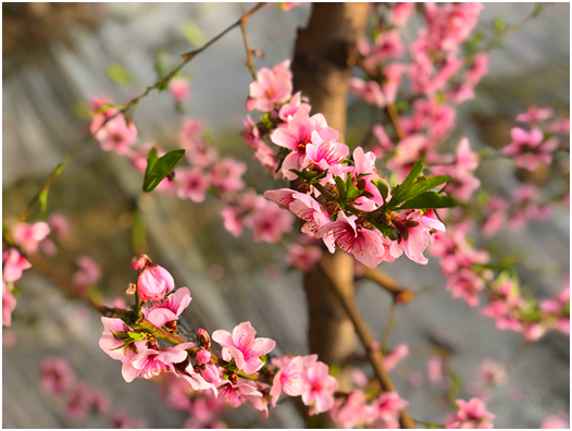 Bright peach blossoms open, just like entering the spring, one after another peach blossoms open in the branches, light white, pink peach blossoms add a colorful new year time.