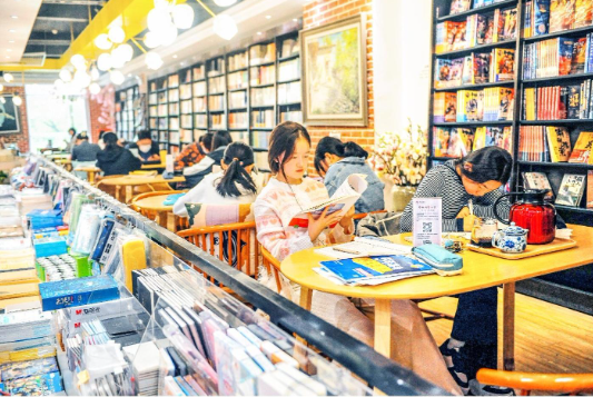 Readers read and study in the science book city. During the Mid-Autumn and National Day holiday, many people came to libraries and book cities to spend their vacation in reading and learning.