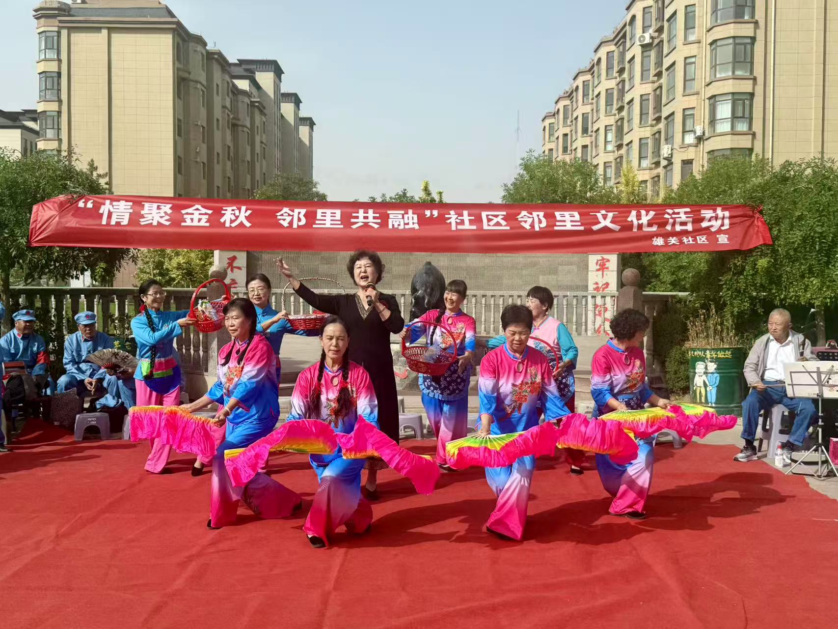 On September 2nd, the Xiongguan community held a "Gathering in the Golden Autumn, Neighbors Integration" red song theme activity the square of the Yandong community. Party members, residents' representatives, and volunteers from the jurisdiction gathered together to revisit the glorious years with passionate melodies, to commemorate the revolutionaryyrs with loud songs, and to strengthen the deep neighborhood friendship in the red atmosphere
