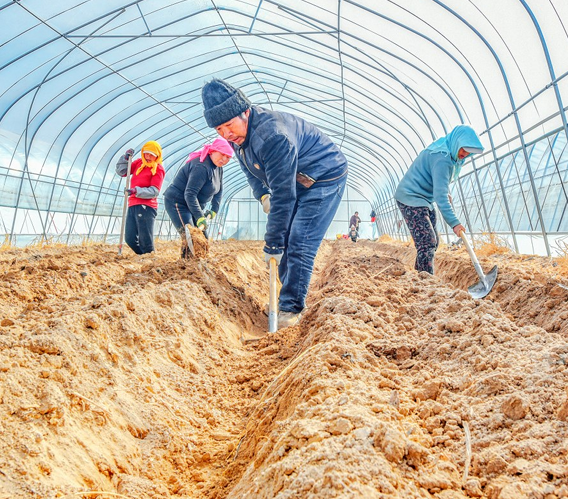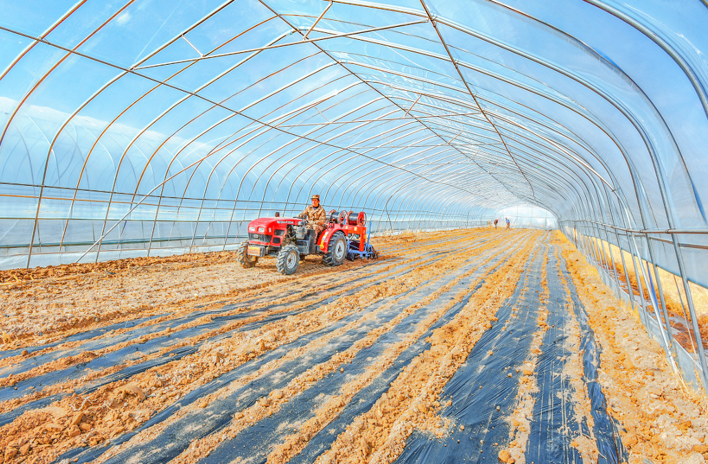 Right now is the key period of spring plowing preparation, farmers seize the farm time to prepare for spring plowing, together depict a vibrant spring plowing busy map. The picture shows that farmers in Shiqiao Village, Wenshu Town, laying the film for the steel-framed facility greenhouses. Reporter Li Wei Wu Xiaoxia Photography Report