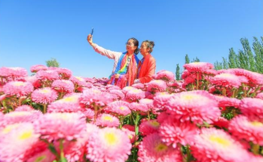 On August 28, Tawan Village's order to export European and American seed production aster ushered in the blooming period, attracting public travelers to take photos and play.