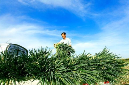 Recently, the new town of Changcheng Village, Hundred Mu Tian vegetable planting farmers professional cooperatives onion harvest, farmers are busy digging, tying bundles, transporting onions, supplying the market.