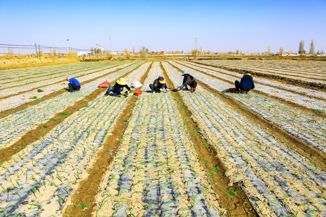 On April 6, onion growers in Changcheng Village, Xincheng Town, were racing against time to transplant onion seedlings while soil moisture was ideal.