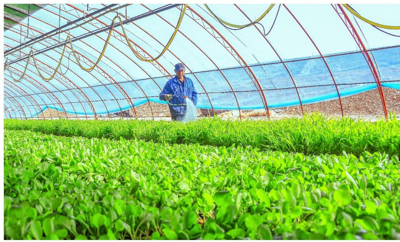 The seedling greenhouse in each village of the new town is thrivin...