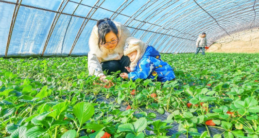 During the Spring Festival, the greenhouse strawberries in Wenshu Town exuded an attractive aroma, attracting many people into the greenhouse, in the joy of picking to experience a different flavor of the New Year, feel the idyllic scenery, enjoy the "strawberry" good time.