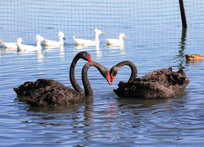Black swans in Jiayuguan Grass Lake National Wetland Park