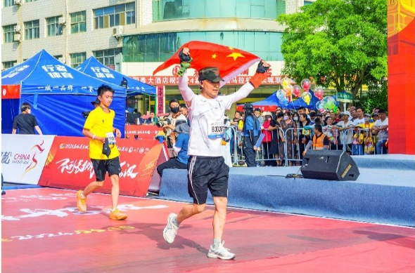 The runner dashed across the finish line