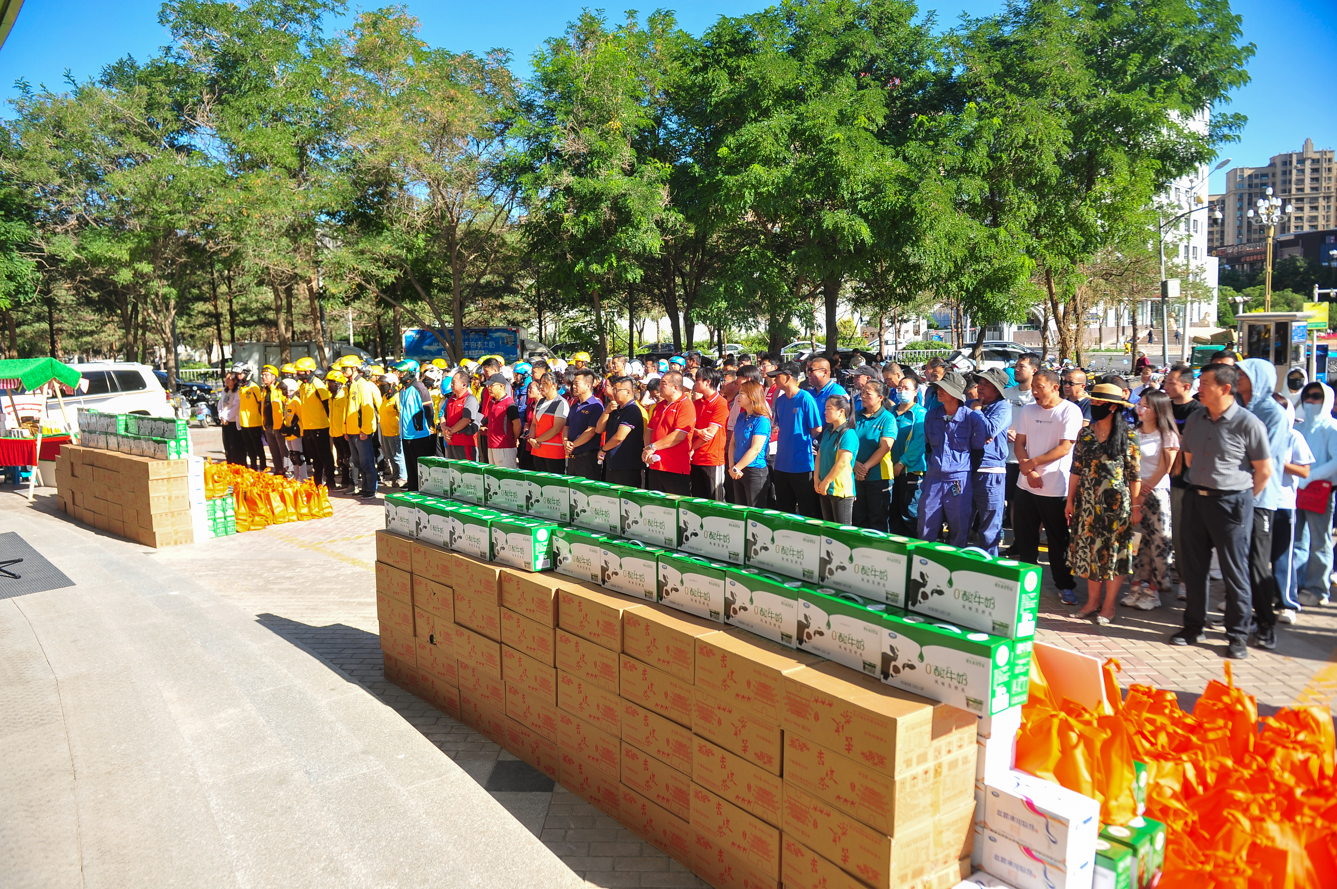 In order to effectively protect the safety and health rights and interests of outdoor workers under high temperature conditions, on August 14th, the city's of Trade Unions carried out a centralized care activity with the theme of "Union sends coolness·Preventing heatstroke and ensuring safety and health" in front of the postal company distributing anti-heatstroke and cooling care products such as apricot peel tea, yogurt, tea leaves, and chrysanthemums to the new type of service workers and donating 500 special comprehensive mutual aid guarantees. This year, the city's Federation of Trade Unions has distributed anti-heatstroke and cooling materials worth 38,1000 yuan to the new type of service workers, covering 2,254 people.